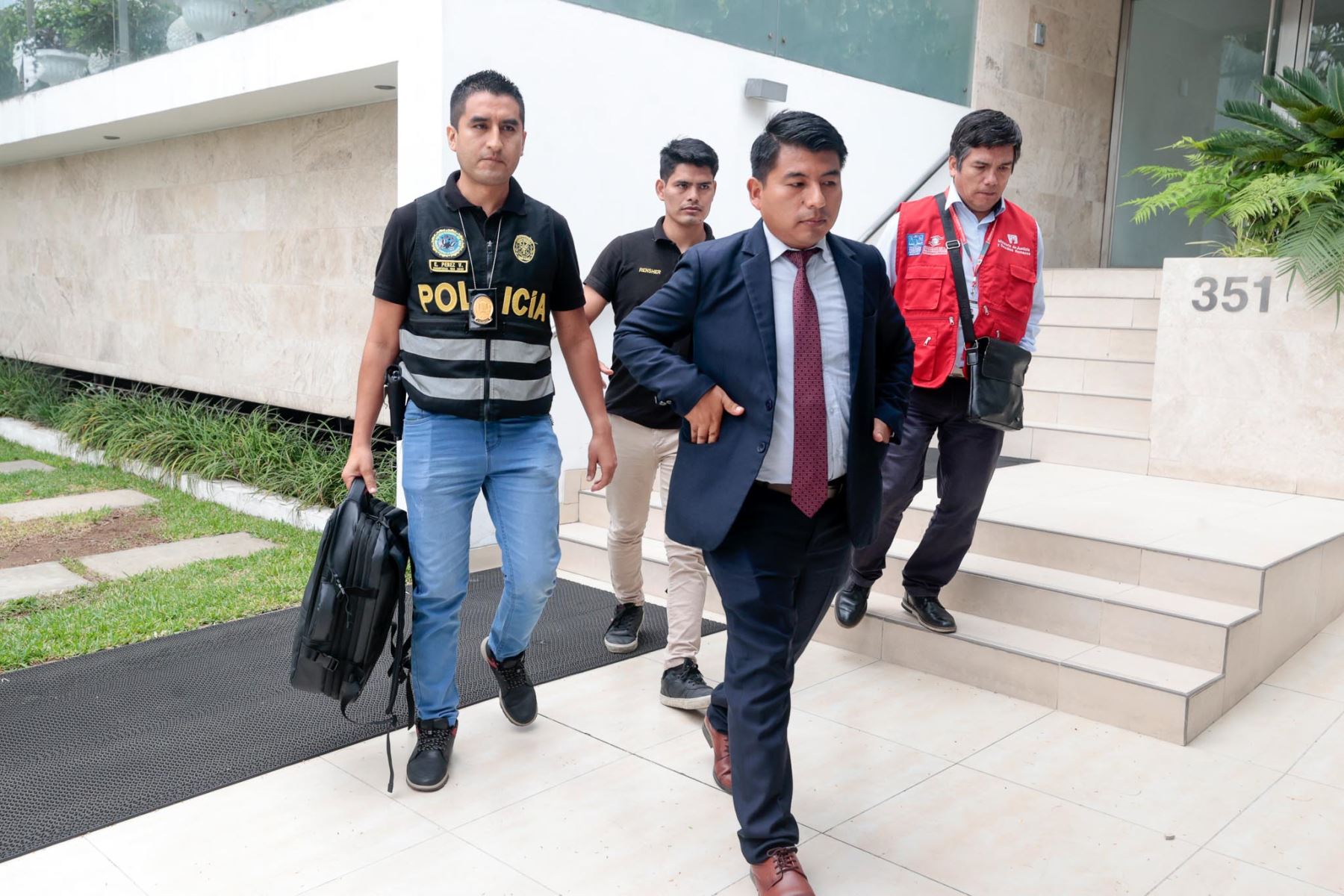 La diligencia, iniciada alrededor de las 5:00 a. m., comprende un total de 15 inmuebles de funcionarios y exfuncionarios relacionados con el caso. Entre ellos figuran las residencias de Pérez y Spadaro, ambas ubicadas en edificios del referido distrito.