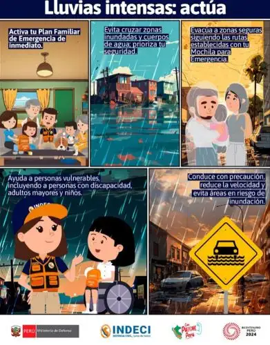 Ante esta situación, el Indeci exhorta a las autoridades de los gobiernos locales y/o regionales a revisar que las rutas de evacuación estén despejadas y debidamente señalizadas, para dirigir a la población hacia una zona segura, debido a que pueden presentarse deslizamientos y huaicos; así como la disponibilidad de los centros de salud, compañías de bomberos y comisarías en la jurisdicción en caso de presentarse una emergencia.