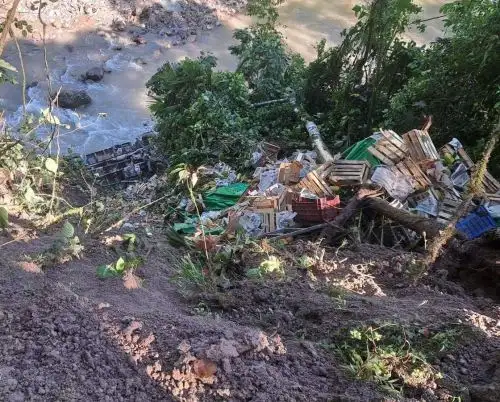 Un camión que transportaba una carga de papayas desde Izcozacin hacia La Merced, en la provincia de Chanchamayo, perdió el control en el sector de Yunculmas - Cacazú, despistándose y precipitándose al río.