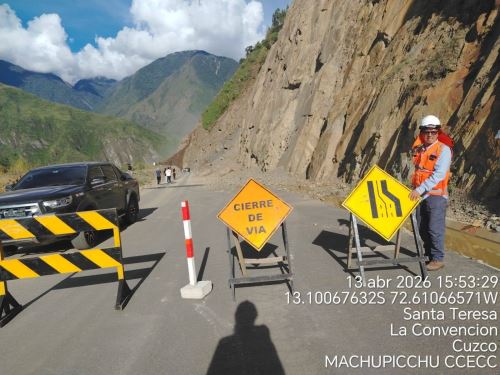 La carretera Santa María-Santa Teresa, provincia cusqueña de La Convención, vía de ingreso a la “Ruta Amazónica” del parque arqueológico de Machu Picchu, permanece bloqueada por un deslizamiento de grandes proporciones que se registró la tarde de este lunes 13 de abril.